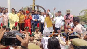 उन्नाव- जनपद में विकास की दिशा में एक महत्वपूर्ण कदम के तहत गांधी तिराहे के सौंदर्यीकरण, सुदृढ़ीकरण एवं चौड़ीकरण के प्रथम चरण का भव्य लोकार्पण किया गया। यह परियोजना जिलाधिकारी गौरांग राठी का ड्रीम प्रोजेक्ट मानी जा रही है, जिसे “उन्नाव विकास दिवस” के रूप में विशेष रूप से मनाया गया। कार्यक्रम में मुख्य अतिथि के रूप में सच्चिदानन्द हरि साक्षी महाराज (सांसद उन्नाव) एवं विशिष्ट अतिथि पंकज गुप्ता (सदर विधायक) उपस्थित रहे। लोकार्पण के दौरान गांधी तिराहे पर जनपद की पहचान “कलम और तलवार की धरती” को दर्शाती भव्य कलाकृति तथा 101 फीट ऊंचे तिरंगे राष्ट्रीय ध्वज का अनावरण किया गया। इस कलाकृति में पुस्तक, कलम और तलवार को एक साथ दर्शाकर उन्नाव के साहित्य और शौर्य को प्रतीकात्मक रूप से प्रस्तुत किया गया है। इसके साथ ही “उन्नाव गौरवशिला” पट्ट का भी अनावरण किया गया, जिसमें जनपद की महान विभूतियों—चंद्रशेखर आजाद, सूर्यकांत त्रिपाठी निराला, गुलाब सिंह लोधी, हसरत मोहानी तथा राजा राव बख्श सिंह—की जीवनियां प्रदर्शित की गई हैं, जिससे नागरिकों को जिले के गौरवशाली इतिहास की जानकारी मिल सकेगी। सुरक्षा व्यवस्था को बेहतर बनाने के लिए गांधी चौराहे पर पुलिस सहायता हेतु पिंक बूथ की स्थापना भी की गई है, जिससे ट्रैफिक प्रबंधन और सुगम होगा। कार्यक्रम की शुरुआत स्वतंत्रता सेनानी विशंभर दयाल त्रिपाठी की प्रतिमा पर माल्यार्पण से हुई। इसके बाद राष्ट्रगान और “वंदे मातरम” के साथ देशभक्ति का माहौल बना रहा। इस अवसर पर सांसद ने कहा कि उन्नाव “कलम और तलवार की धरती” के रूप में जाना जाता है और यहां के महान व्यक्तित्वों का योगदान संविधान निर्माण तक में रहा है। वहीं जिलाधिकारी ने बताया कि इस परियोजना से ट्रैफिक व्यवस्था बेहतर होगी, वेंडर्स को व्यवस्थित स्थान मिलेगा और यात्रियों को भी सुविधा होगी। विधायक पंकज गुप्ता ने कहा कि यह परियोजना उन्नाव के विकास को नई गति देगी और आने वाली पीढ़ियों को अपने गौरवशाली इतिहास से जोड़ने का कार्य करेगी। कार्यक्रम में पुलिस अधीक्षक जयप्रकाश, अपर जिलाधिकारी सुशील कुमार गोंड़, अमिताभ यादव, सिटी मजिस्ट्रेट राजीव राज, नगर पालिका अध्यक्ष श्वेताभानु मिश्रा, भाजपा जिलाध्यक्ष अनुराग अवस्थी सहित कई अधिकारी और जनप्रतिनिधि उपस्थित रहे। Post navigation उन्नाव: अंबेडकर जयंती पर निबंध प्रतियोगिता, उत्कृष्ट छात्रों को किया गया सम्मानित