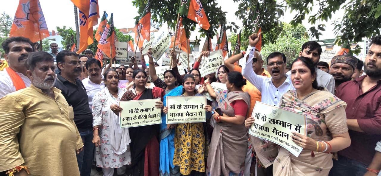 कांग्रेस नेता राहुल गांधी द्वारा मातृशक्ति पर की गई अभद्र टिप्पणी के खिलाफ, सदर विधायक आवास हरदोई पुल से भाजपा कार्यकर्ताओं और उन्नाव की सम्मानित मातृशक्तिया जिला कांग्रेस कार्यालय तक एक विशाल रैली निकाली। भाजपा जिलाध्यक्ष अनुराग अवस्थी जी ने कहा हम सब एकजुट हैं और किसी भी कीमत पर मातृशक्ति के सम्मान पर आंच नहीं आने देंगे। आज उन्नाव की बहनों-बेटियों ने सड़क पर उतरकर यह सिद्ध कर दिया कि भाजपा के नेतृत्व में मातृशक्ति का मान-सम्मान और सुरक्षा सर्वोपरि है। सदर विधायक पंकज गुप्ता जी ने कहा भारतीय संस्कृति में मातृशक्ति का स्थान सर्वोपरि है। मां केवल परिवार की धुरी ही नहीं, बल्कि समाज और राष्ट्र की असली ताकत है। कांग्रेस और उनके नेताओं द्वारा किया गया यह असंवेदनशील आचरण केवल प्रधानमंत्री जी की माता जी का ही अपमान नहीं, बल्कि पूरे देश की हर मां और हर बेटी का अपमान है। कार्यक्रम में जिलाध्यक्ष अनुराग अवस्थी, सदर विधायक पंकज गुप्ता ,कोषाध्यक्ष मनीष जायसवाल , पूर्व मंडल अध्यक्ष सुशील तिवारी, महिला मोर्चा जिला अध्यक्ष साधना दीक्षित ,भाजपा नेत्री अनीता विमल द्विवेदी , पूर्व जिलाध्यक्ष महिला मोर्चा मंजूलता अवस्थी , निशा अग्निहोत्री, प्रियंका शुक्ला, कल्पना त्रिवेदी , पवित्रा उपाध्याय , दिपिका बाजपेई , दीपा त्रिपाठी, निम्मी अरोड़ा, प्रीति शर्मा , मोनिका सिन्हा , लक्ष्मी जी, ममता द्विवेदी, बउवा अवस्थी, नीरज शुक्ला, विनय सिंह, सुरेंद्र जयसवाल, पंकज तिवारी, अखिल मिश्रा, एवं अन्य सम्मानित भाजपा कार्यकर्ता एवं उन्नाव की मातृशक्तियों की मौजूदगी रही। Post navigation सेवा पूर्ण, सम्मान अनंत—उन्नाव पुलिस ने दी दो कर्मियों को विदाई जिलाधिकारी ने ओटीडी सेल बैठक में सुधार के दिए निर्देश