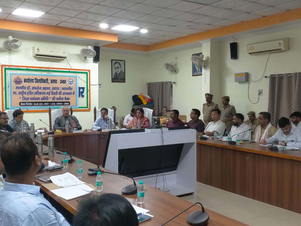 उन्नाव 06 सितम्बर 2025 विकास भवन सभागार में मा0 राष्ट्रीय हरित अधिकरण नई दिल्ली डा0 अफरोज अहमद, सदस्य/न्यायाधीश की अध्यक्षता एवं जिलाधिकारी श्री गौरांग राठी की उपस्थिति में जिला पर्यावरण समिति की बैठक सम्पन्न हुई। बैठक में जनपद उन्नाव की भौगोलिक स्थिति का आकलन करते हुए बताया गया कि यह जनपद 4558 वर्ग किलोमीटर में फैला हुआ है। 2011 की जनगणना के अनुसार इस जनपद की 3108367 जनसंख्या है। जिसमें 82.9 प्रतिशत ग्रामीण एवं 17.1 प्रतिशत शहरी क्षेत्रों में निवास करते है। यह जनपद गंगा एवं सई नदी के बीच में स्थित है। जिसमें गंगा नदी 128.54 किलोमीटर एवं सई नदी 197.54 किलोमीटर के एरिया से गुजरती है। इस जनपद का वर्ष 2023 के अनुसार 6.02 प्रतिशत एरिया वनाच्छादित है। बैठक में अपशिष्ट प्रबन्धन योजना, वायु गुणवत्ता प्रबन्धन योजना, जल गुणवत्ता प्रबन्धन योजना, घरेलू सीवेज प्रबन्धन योजना, औद्योगिक अपशिष्ट जल प्रबन्धक, खनन गतिविधि प्रबन्धन योजना तथा ध्वनि प्रदूषण प्रबन्धन योजना के संबंध में मा0 सदस्य/न्यायाधीश द्वारा विस्तार से चर्चा की गयी। Post navigation एसपी उन्नाव ने थाना सफीपुर को दी नई सौगात स्वार्थ और वोटबैंक की राजनीति ने किया यूपी को पीछे, अब हर क्षेत्र में अग्रणी: सीएम योगी