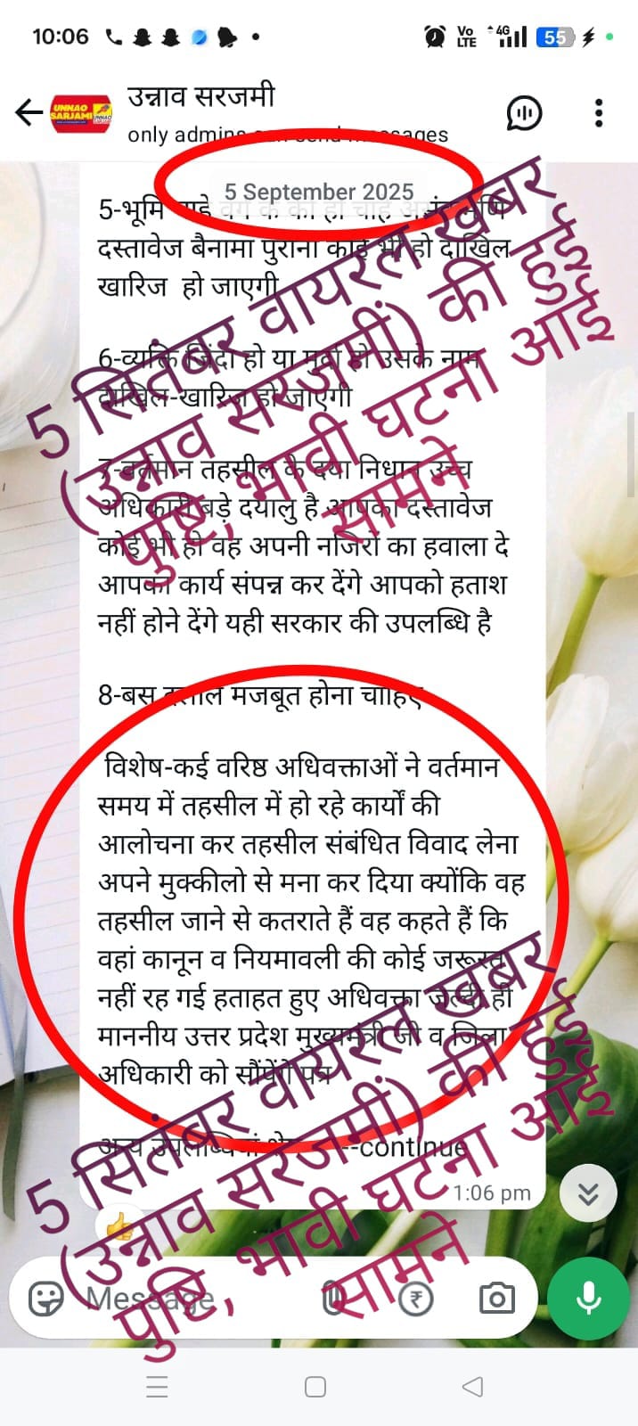 उन्नाव– एक सैकड़ा से ज्यादा अधिवक्ताओं ने सदर तहसील की। कार्यपद्धति से तंग आकर हस्ताक्षर कर शिकायत पत्र बारएसोसिएशन को सोपा। Post navigation उन्नाव: मिशन शक्ति फेज 5 में छात्राओं को मिले सुरक्षा व अधिकारों के पाठ थाना समाधान दिवस: डीएम और एसपी ने सुनीं जनता की समस्याएं