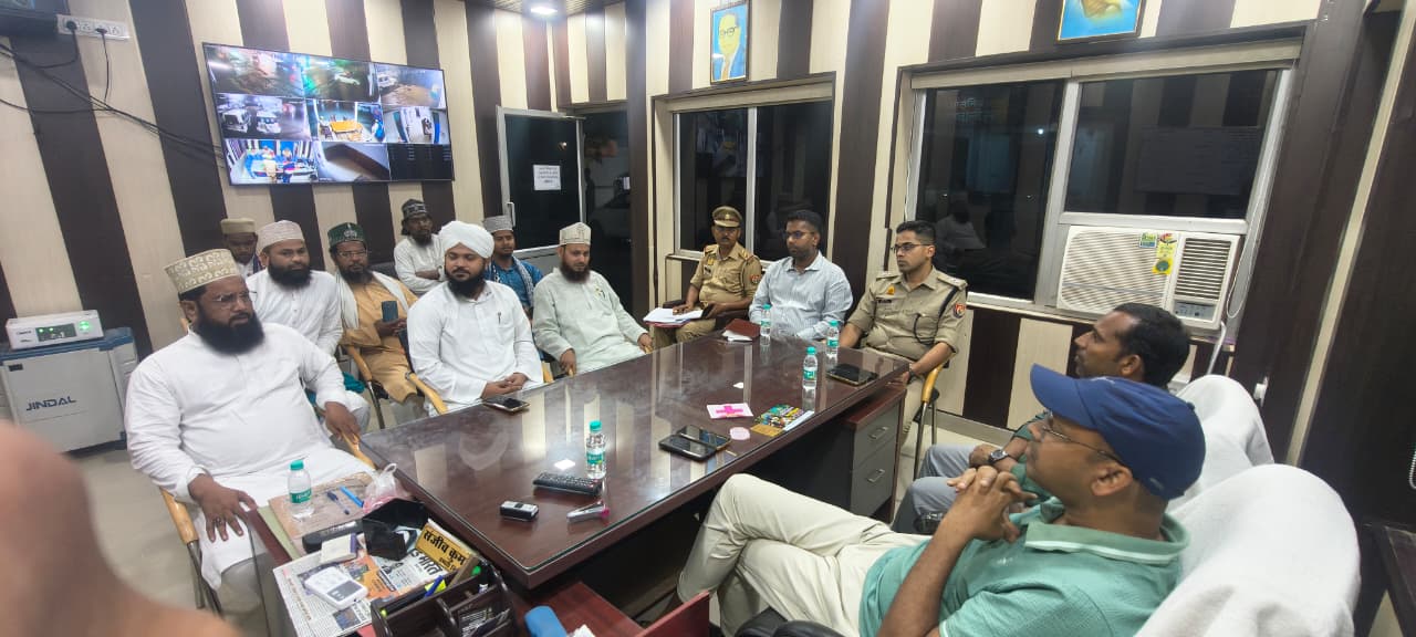 उन्नाव पुलिस ने आगामी नवरात्र के मद्देनजर शांति और सौहार्द बनाए रखने के लिए पीस कमेटी की बैठक थाना कोतवाली सदर में आयोजित की। इस बैठक में अपर जिलाधिकारी उन्नाव श्री सुशील कुमार, अपर पुलिस अधीक्षक दक्षिणी श्री अखिलेश सिंह एवं क्षेत्राधिकारी नगर श्री दीपक यादव ने भाग लिया। बैठक में क्षेत्र के संभ्रांत व्यक्तियों व धर्मगुरुओं ने हिस्सा लिया। इस दौरान पुलिस अधिकारियों ने आवश्यक दिशा-निर्देश दिए और सभी से सहयोग की अपील की। पुलिस का उद्देश्य नवरात्र के दौरान शांति और सौहार्द बनाए रखना है। बैठक में सभी ने मिलकर त्योहारों को शांतिपूर्ण तरीके से मनाने का संकल्प लिया। पुलिस प्रशासन ने सभी से अफवाहों पर ध्यान न देने और शांति बनाए रखने में सहयोग करने का अनुरोध किया। Post navigation महिला सशक्तिकरण की मिसाल: उन्नाव में मिशन शक्ति के तहत हुआ सम्मान समारोह उन्नाव के सरस्वती टॉकीज में आग लगने से क्षेत्र में दहशत
