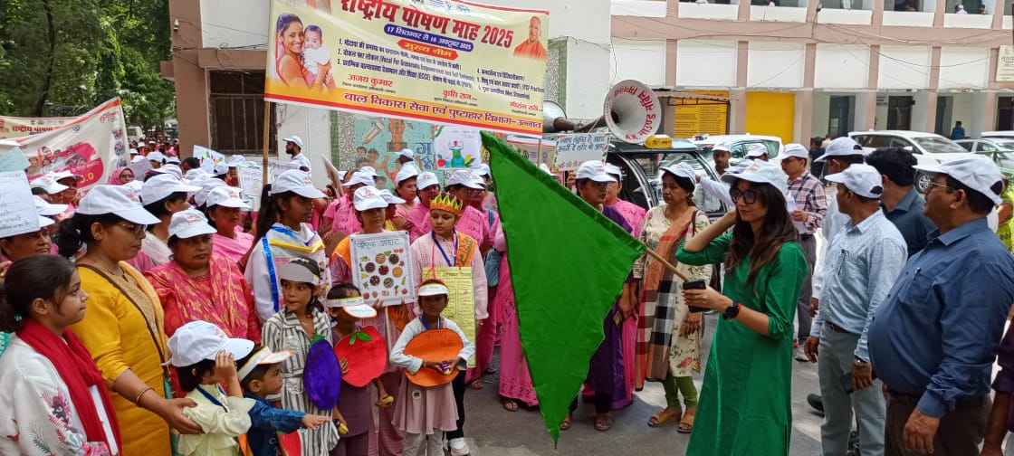 उन्नाव 08 अक्टूबर 2025 जिला कार्यक्रम अधिकारी श्री अजय कुमार ने बताया है कि राष्ट्रीय पोषण माह एवं मिशन शक्ति के अंतर्गत कलेक्ट्रेट परिसर से मुख्य विकास अधिकारी सुश्री कृतिराज द्वारा हरी झंडी दिखाकर पोषण रैली को रवाना किया गया तथा साथ ही पोषण रैली में सम्मिलित सभी लोगों को पोषण शपथ दिलाई गयी। मुख्य विकास अधिकारी द्वारा पोषण जागरूकता हेतु छोटे बच्चों के सहयोग से तिरंगामय गुब्बारे को आसमान में छोड़ा गया, रैली में छोटे बच्चों, किशोरियों एवं आंगनवाड़ी कार्यकत्रियों के द्वारा मुख्य विकास अधिकारी को पोषण से सम्बंधित चित्रकारी एवं पोषण किट प्रदान की गयी। रैली शहर के विभिन्न मार्गो से होते हुए निरीक्षण भवन में समाप्त हुई, रैली में 250 से अधिक बाल विकास के कर्मियों द्वारा प्रतिभाग किया गया। उन्होने बताया है कि मा0 उपाध्यक्ष उत्तर प्रदेश राज्य महिला आयोग श्रीमती अपर्णा यादव द्वारा आज वन स्टाप सेंटर उन्नाव का निरीक्षण किया गया तथा वहाँ पर आयोजित कार्यक्रम में गर्भवती महिलाओं की गोद भराई तथा 6 माह के बच्चों को अन्नप्राशन कराया गया। उक्त के साथ-साथ जिला अस्पताल में जन्मी बालिकाओं का कन्या जन्मोत्सव मनाया गया तथा उन्हें बेबी किट का वितरण किया गया तथा वहां पर बाल विकास विभाग द्वारा लगाए गए स्टॉल का भी निरीक्षण किया गया। इस अवसर पर जिला प्रोबेशन अधिकारी श्री क्षमानाथ राय, वन स्टाप सेंटर संचालिका एकता श्रीवास्तव सहित आगनवाडी कार्यकत्री आदि उपस्थित रहे। Post navigation उन्नाव पुलिस लाइन में मैराथन दौड़ के साथ गूंजा नारा — “नारी शक्ति, देश की शक्ति उन्नाव: आत्मनिर्भर भारत संकल्प सम्मेलन में जुटे भाजपा के दिग्गज नेता