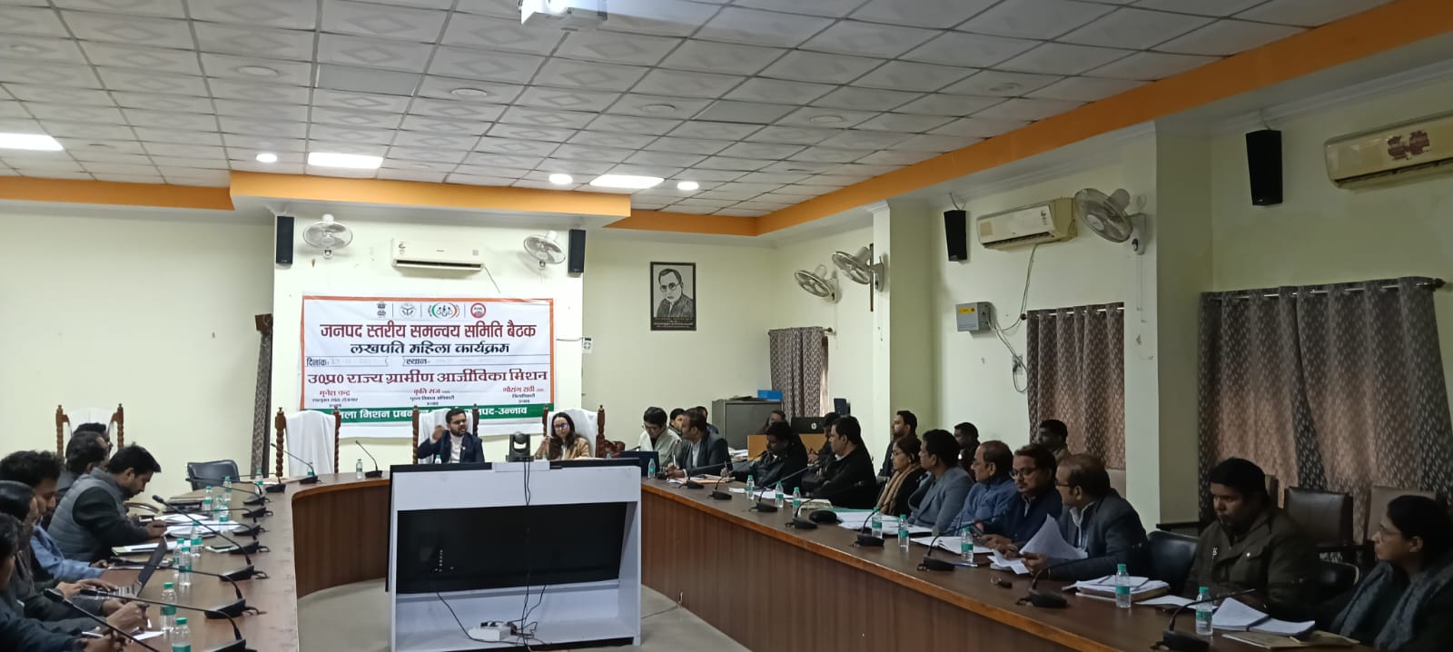 जिलाधिकारी ने ली राष्ट्रीय ग्रामीण आजीविका मिशन के अन्तर्गत Rural Prosperity and Resilience Programmes (RPRP) व डी०एल०सी०सी० क्रियान्वयन समिति की बैठक, जिलाधिकारी ने ग्रामीण युवाओं को नये रोजगार और व्यवसाय सृजन में गति बढ़ाने हेतु डीसी मनरेगा को निर्देश दिये जिलाधिकारी ने स्वंय सहायता समूह की दीदी की आय बढ़ाने हेतु अन्य विभागों की योजनाओं से जोड़ते हुये लखपति दीदी कार्यकम में त्वरित गति प्रदान किये जाने के निर्देश दिये आज जिलाधिकारी श्री गौरांग राठी जी की अध्यक्षता में विकास भवन सभागार में राष्ट्रीय ग्रामीण आजीविका मिशन के अन्तर्गत Rural Prosperity and Resilience Programmes (RPRP) व डी०एल०सी०सी० क्रियान्वयन समिति की बैठक का आयोजन किया गया। इस अवसर पर जिलाधिकारी ने ग्रामीण महिलाओं को उद्यम विकास रोजगार में वित्तीय स्वतंत्रता हेतु प्रेरित करने और ग्रामीण युवाओं को नये रोजगार और व्यवसाय सृजन में गति बढ़ाने हेतु डीसी मनरेगा को निर्देश दिये। जिलाधिकारी ने निर्देश देते हुए कहा कि सीमान्त छोटे किसान एवं भूमिहीन किसानों की उत्पादकता सुधार व वेयर हाउसिंग के आधुनिकिकरण हेतु योजना पर कार्य किया जाए। कहा कि साथ ही लखपति दीदी कार्यक्रम के अन्तर्गत्त विभागों को स्वंय सहायता समूह की दीदी की आय बढ़ाने हेतु अन्य विभागों की योजनाओं से जोड़ते हुये लखपति दीदी कार्यकम में त्वरित गति प्रदान किया जाय । जिलाधिकारी ने निर्देशित करते हुए कहा कि योजना के लिए प्रभावी कार्य किया जाए किस भी स्तर पर लापरवाही ना हो। कहा की लखपति दीदी सरकार की बहुत ही महत्वाकांक्षी योजना है प्रत्येक ग्राम में अधिक से अधिक लखपति दीदी का चयन कर आवश्यक कार्रवाई किया जाए। कहा अधिक से अधिक स्वयं सहायता समूहों का चयन कर उनकी आय बढ़ाने के लिये गुणवत्ता युक्त निर्णय लिये जाए। Post navigation जिलाधिकारी की अध्यक्षता में जिला स्तरीय डीसी/डीएलआरसी परामर्श समिति की बैठक सम्पन्न वर्षों से विवादों में घिरी नगर पालिका उन्नाव, भ्रष्टाचार से ऊबे सभासदों का सामूहिक इस्तीफा