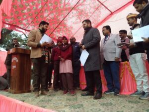 विकास खण्ड पूर्वा की ग्राम पंचायत अस हेरु में आयोजित चौपाल में जिलाधिकारी श्री गौरांग राठी जी ने सुनी ग्राम वासियों की समस्याएं जिलाधिकारी ने जीरो पॉवर्टी के चिन्हित परिवारों से मौके पर पहुंच की बातचीत, योजनाओं का लाभ मिला है या नहीं ली जानकारी जीरो पावर्टी के तहत चिन्हित परिवारों को मिले शतप्रतिशत योजनाओं का लाभ- जिलाधिकारी जिलाधिकारी ने पात्र व्यक्तियों को सरकार की कल्याण कारी योजना से जोड़कर लाभ दिलाए जाने के सम्बन्धित अधिकारी को दिया निर्देश सरकार की महत्वाकांक्षी योजना कन्या सुमंगला और मुख्यमंत्री बाल सेवा योजना के लाभार्थियों का चिन्हाकन कर दें योजना का लाभ- जिला अधिकारी आज जिलाधिकारी श्री गौरांग राठी जी की अध्यक्षता में विकास खण्ड पूर्वा की ग्राम पंचायत अस हेरु में शीतकालीन भ्रमण के अवसर पर ग्राम चौपाल का आयोजन किया गया। इस अवसर पर जिलाधिकारी ने ग्राम पंचायत अस हेरु के जीरो पावर टी के परिवारों से मौके पर जाकर मुलाकात की । जीरो पावर्टी के इंडिकेटर प्रधानमंत्री आवास शौचालय उज्ज्वला मनरेगा जॉब कार्ड श्रम कार्ड आयुष्मान कार्ड पेंशन मिल रही है या नहीं जानकारी ली आच्छादित हुए हैं या नहीं मौके पर जाकर सत्यापन किया और लाभार्थियों से संवाद किया । जिलाधिकारी ने जीरो पॉवर्टी के तहत योजनाओं से लाभ दिए जाने से वंचित परिवारों का प्राथमिकता से चयन कर सरकार की कल्याण कारी योजनाओं से शतप्रतिशत लाभान्वित किए जाने के निर्देश खंड विकास अधिकारी को दिया । जिलाधिकारी ने कहा कि ऐसे परिवारों को गंभीरता से सत्यापन किया जाए सभी सम्बन्धित योजनाओं का लाभ जीरो पॉवर्टी वाले परिवारों को प्राथमिकता से मिलना चाहिए। इस अवसर पर आईसीडीएस स्वयं सहायता समूह आयुष्मान पेंशन पेंशन प्रधानमंत्री किसान सम्मान निधि मिशन शक्ति पंचायती राज बेसिक शिक्षा सहित अन्य विभागों के अधिकारियों द्वारा अपने विभाग द्वारा चलाई जा रही योजनाओं की उपस्थिति ग्रामीण जनो को जानकारी दी गयी और मौके पर ही पंजीकरण किया गया। इस अवसर पर जिलाधिकारी ने आईसीडीएस स्वयं सहायता समूह आयुष्मान पेंशन प्रधानमंत्री किसान सम्मान निधि मिशन शक्ति पंचायती राज बेसिक शिक्षा सहित अन्य विभागों के स्टालों में पहुंच कर सम्बन्धित अधिकारियों से जानकारी ली गयी। जिलाधिकारी ने आयुष्मान कार्ड के लगे कैम्प में जीरो पावर्टी के परिवारों के कार्ड बनाये जाने का सत्यापन किया और पात्र व्यक्तियों के प्राथमिकता से गोल्डन कार्ड बनाये जाने के निर्देश दिये।पेंशन योजना के कैम्प का अवलोकन कर जिलाधिकारी ने कन्या सुमंगला योजना और मुख्यमंत्री बाल सेवा योजना के लाभार्थियों के सत्यापन पर जोर दिया और निर्देशित किया कि गंभीरता से सत्यापन कर 