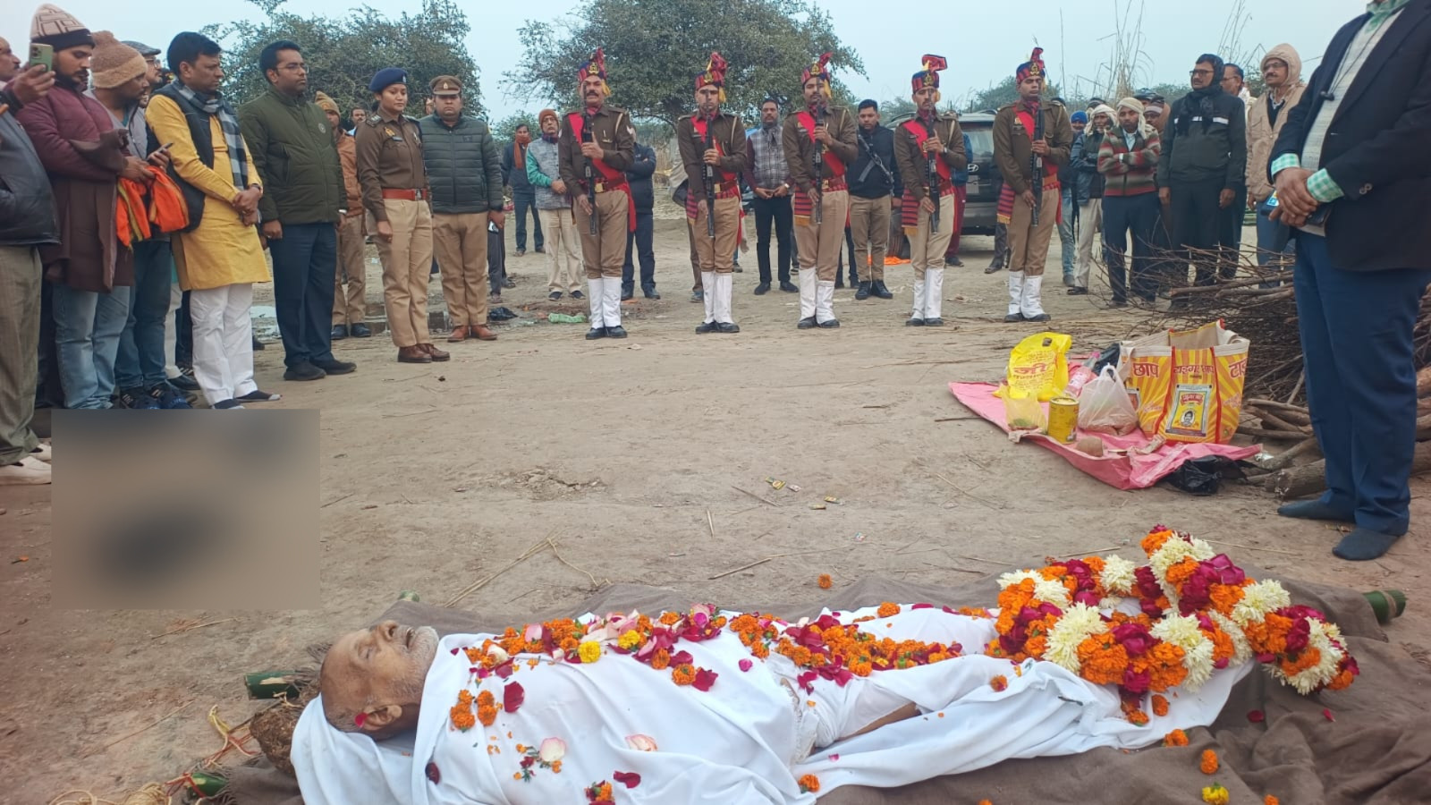 आज दिनांक 03.01.2026 को जनपद उन्नाव के स्वतंत्रता संग्राम सेनानी स्वर्गीय श्री रामशंकर त्रिपाठी पुत्र स्व० गोविन्द प्रसाद, निवासी 326/335 ए.बी. नगर, थाना कोतवाली सदर, जनपद उन्नाव (मूल निवासी ग्राम रावतपुर सरउआ, थाना माखी, जनपद उन्नाव), उम्र लगभग 97 वर्ष, का निधन हो गया। स्वतंत्रता संग्राम में उनके अमूल्य योगदान को दृष्टिगत रखते हुए उनके पार्थिव शरीर को राजकीय सम्मान के साथ अंतिम विदाई दी गई। इस अवसर पर सम्मान स्वरूप गार्ड ऑफ ऑनर प्रदान किया गया। अंतिम विदाई कार्यक्रम में माननीय विधायक सफीपुर श्री बम्बा लाल दिवाकर, उपजिलाधिकारी सदर श्री क्षितिज द्विवेदी, क्षेत्राधिकारी सफीपुर श्रीमती सोनम सिंह, थाना प्रभारी माखी श्री योगेश कुमार सिंह सहित पुलिस बल एवं प्रशासनिक अधिकारी उपस्थित रहे। Post navigation उन्नाव: चंद्रिका देवी मंदिर में चोरी, दान पात्र लेकर फरार हुए चोर उन्नाव: उर्स मेले की सुरक्षा व्यवस्था का एएसपी दक्षिणी ने किया निरीक्षण