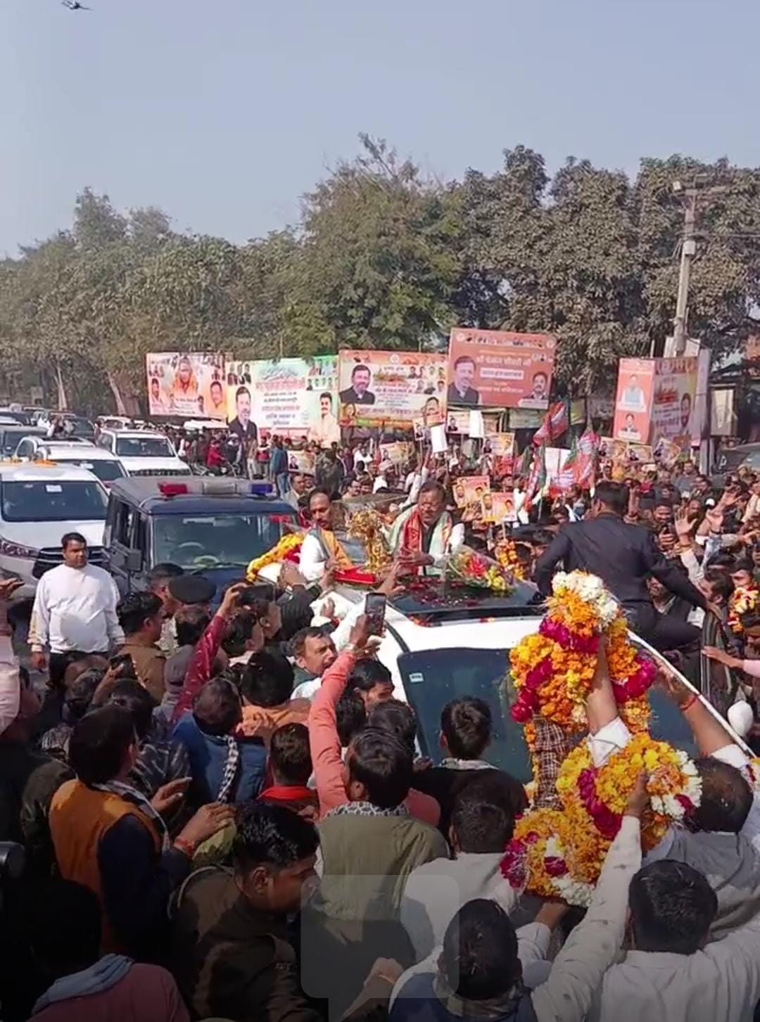 उन्नाव सांसद एवं महामंडलेश्वर डॉ. साक्षी महाराज का जन्मदिन पूरे हर्षोल्लास और भव्यता के साथ मनाया गया। इस अवसर पर शहर स्थित अरोड़ा रिसॉर्ट-2 में आयोजित समारोह में हजारों की संख्या में समर्थक और कार्यकर्ता पहुंचे। सुबह से ही डॉ. साक्षी महाराज को बधाई देने वालों का तांता लगा रहा। कार्यक्रम में जनपद के सभी प्रमुख नेता मौजूद रहे, वहीं विधायकों का काफिला भी समारोह में शामिल हुआ। भाजपा कार्यकर्ताओं में खासा उत्साह देखने को मिला। इस अवसर पर उत्तर प्रदेश के नवनिर्वाचित प्रदेश अध्यक्ष पंकज चौधरी भी उन्नाव पहुंचे। साथ ही ऋत फाउंडेशन के चेयरमैन अनुराग त्रिवेदी अपने समर्थकों के साथ अरोड़ा रिसॉर्ट पहुंचे और डॉ. साक्षी महाराज को शुभकामनाएं दीं। कड़ी सुरक्षा व्यवस्था के बीच यह आयोजन पूरी तरह शांतिपूर्ण ढंग से संपन्न हुआ। Post navigation उन्नाव में श्री गुरु गोविंद सिंह जी की स्मृति में भव्य शोभायात्रा, श्रद्धालुओं की उमड़ी भीड़ माननीय उपमुख्यमंत्री केशव प्रसाद मौर्य ने उन्नाव में की विकास कार्यों की समीक्षा