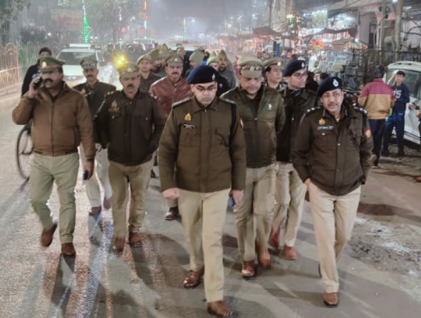 जनपद में सुरक्षा एवं शांति व्यवस्था को अक्षुण्य बनाए रखने के उद्देश्य से आज दिनांक 16.01.2026 को श्री जय प्रकाश सिंह, वरिष्ठ पुलिस अधीक्षक उन्नाव के नेतृत्व में श्री दीपक यादव सहायक पुलिस अधीक्षक/ क्षेत्राधिकारी नगर व श्री संचित शर्मा, सहायक पुलिस अधीक्षक (प्रशिक्षु) द्वारा थाना गंगाघाट क्षेत्रांतर्गत कस्बा गंगाघाट में पैदल गश्त की गई। पैदल गश्त के दौरान प्रभारी निरीक्षक गंगाघाट मय हमराह पुलिस बल उपस्थित रहे। वरिष्ठ पुलिस अधीक्षक उन्नाव द्वारा पुलिस बल को निर्देशित किया गया कि संवेदनशील एवं भीड़-भाड़ वाले क्षेत्रों में निरंतर गश्त, प्रभावी चेकिंग एवं निगरानी बनाए रखी जाए, जिससे कानून-व्यवस्था सुदृढ़ रहे और आमजन में सुरक्षा की भावना बनी रहे। Post navigation उन्नाव: निर्वाचक नामावली विशेष पुनरीक्षण-2026 को लेकर डीएम ने की मान्यता प्राप्त राजनीतिक दलों संग बैठक गणतंत्र दिवस सांस्कृतिक कार्यक्रमों की तैयारियों को लेकर पुलिस सभागार में बैठक आयोजित