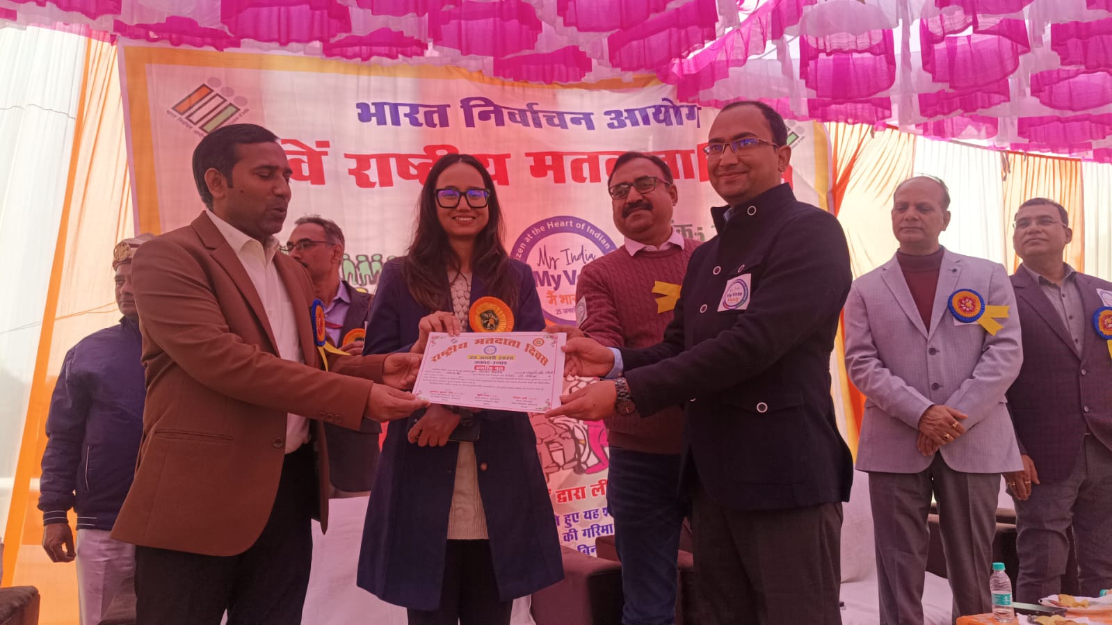 विशेष प्रगाढ़ पुनरीक्षण अभियान में उत्कृष्ट कार्य करने वाले अधिकारियों कर्मचारियों को मुख्य विकास अधिकारी सुश्री कृतिराज अपर जिलाधिकारी वित्त एवं राजस्व ने दिया प्रशस्ति पत्र मुख्य विकास अधिकारी व अपर जिलाधिकारी वित्त एवं राजस्व ने मेहंदी चित्रकला पोस्टर पतंग प्रतियोगिता में उत्कृष्ट प्रदर्शन करने वाले बच्चों को प्रशस्ति पत्र देकर दी उज्जवल भविष्य की शुभकामनाएं लोकतंत्र की रक्षा और मजबूती के लिए हर नागरिक मतदान अवश्य करें,मतदाता अपने मत के महत्व को समझें, लोकतंत्र को खतरे से बचाने मजबूती के लिए आगे आकर एक जागरूक मतदाता बनें, और आसपास के लोगों को भी मतदान के प्रति प्रेरित करें -मुख्य विकास अधिकारी 18वर्ष की आयु पूर्ण करने वाले सभी नागरिक मतदाता सूची का हिस्सा बन सकें, आगामी चुनाव में बूथ तक हर नागरिक पहुंच जाए यही मतदाता दिवस का मुख्य उद्देश्य-अपर जिलाधिकारी वित्त एवं राजस्व लोकतंत्र को मजबूती देने और उसकी रक्षा के लिए सभी निर्वाचनों में अपने मत का प्रयोग करें यह एक जागरूक मतदाता के लिए बहुत ही आवश्यक है-ADM सुशील कुमार गोंड़ आज मुख्य विकास अधिकारी सुश्री कृतिराज अपरजिलाधिकारी वित्त एवं राजस्व श्री सुशील कुमार गोंड़ जी की गरिमा मई उपस्थित में राजकीय इंटर कालेज के परिसर में 16 वें राष्ट्रीय मतदाता दिवस के कार्यक्रम का भव्य आयोजन किया गया। इस अवसर पर मतदाता जगरुकता विषयक चित्रकला रंगोली पेंटिंग और पतंग प्रतियोगिता का भी आयोजन किया गया । अपर जिलाधिकारी वित्त एवं राजस्व सुशील कुमार गोंड़ मुख्य विकास अधिकारी सुश्री कृति राज ने भी पतंग उड़ा कर बच्चों को प्रतियोगिता के प्रति प्रेरित किया। साथ ही बच्चों द्वारा बनाई गई रंगोली चित्रकला पोस्टर प्रतियोगिता का मुख्य विकास अधिकारी और अपर जिला अधिकारी ने अवलोकन कर बच्चों की सराहना किया। मतदाता दिवस पर संबोधित करने से पूर्व मुख्य विकास अधिकारी सुश्री कृतिराज ने उपस्थित सभी अधिकारी कर्मचारी शिक्षक गणों बच्चों को मतदाता दिवस की शुभकामनाएं दिया। कहा की लोकतंत्र की मजबूती के लिए मतदान बहुत ही आवश्यक है आप लोग एक श्रेष्ठ मतदाता बनिए आपका एक वोट लोकतंत्र के लिए बहुत ही महत्वपूर्ण है। कहा कि एकमत आपका सरकार बदल सकता है अपने मत से आप इच्छा अनुसार सरकार का चुनाव कर सकते हैं । कहा की मतदाता का उद्देश्य अपने हक को समझना ही नहीं है और परसेंटेज बढ़ाना ही नहीं है यह दुनिया का सबसे बड़ा लोकतंत्र है आप लोग यह भी जाने की लोकतंत्र को किससे खतरा है और कैसे लोकतंत्र को मजबूत किया जा सकता है क्या किया जा सकता है यह तभी हो सकता है जब आप सब लोग जागरूक होंगे ग्रुप डिस्कशन करेंगे। कहा कि 18 वर्ष की आयु पूर्ण करने वाले सभी मतदाता अपना नाम मतदाता 