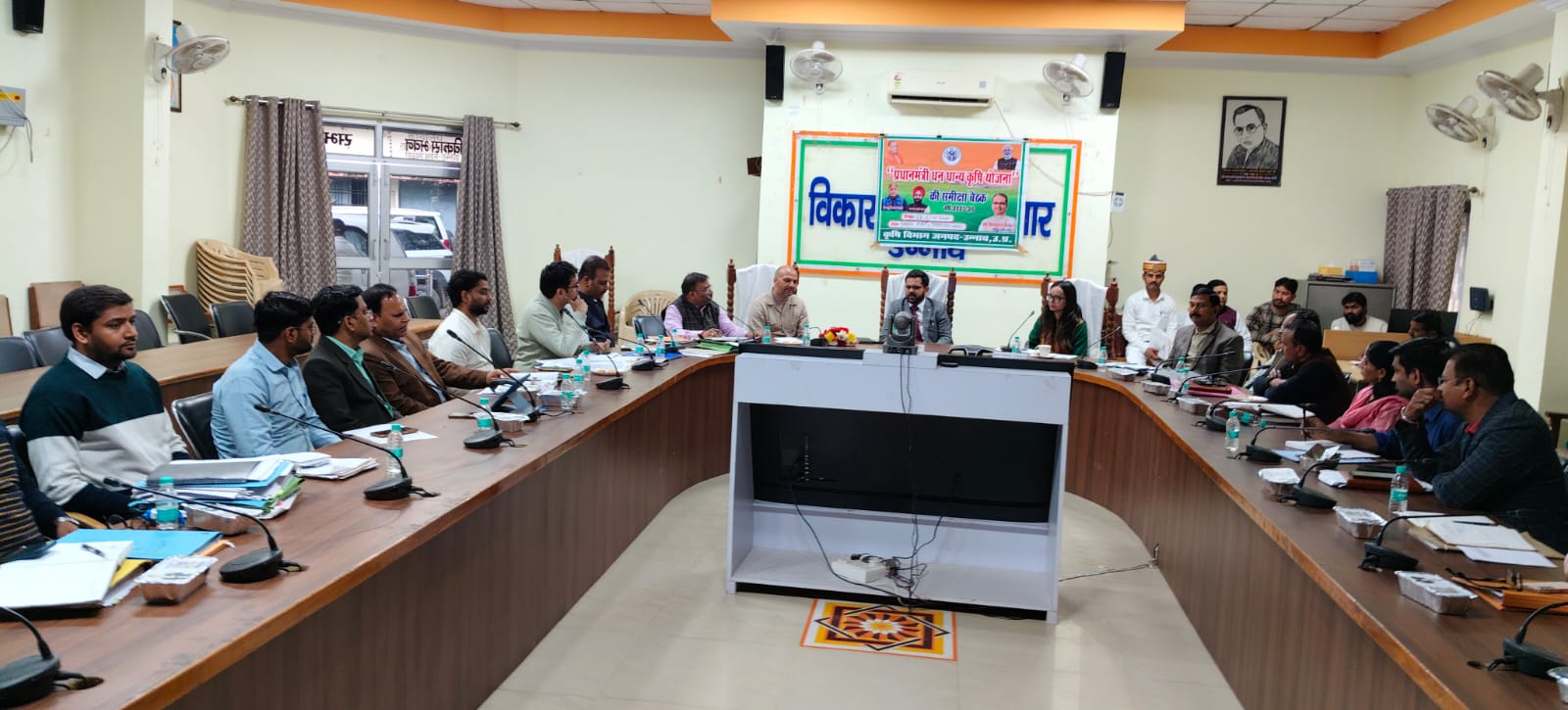 आज विकास भवन सभागार मे जिलाधिकारी श्री गौरांग राठी जी की अध्यक्षता में प्रधानमंत्री धन धान्य कृषि योजना की जनपदीय समीक्षा बैठक कृषि एवं कृषि कल्याण मंत्रालय एवं भारत सरकार से नामित जनपद उन्नाव नोडल अधिकारी डा0गगनेश शर्मा निदेशक नेशनल सेन्टर फार आर्गेनिक एण्ड नेचुरल फार्मिंग गाजियाबाद की उपस्थित मे आयोजित की गयी, । इस अवसर पर उप कृषि निदेशक रवि चन्द्र प्रकाश ने योजना के सम्बंध में बिंदुवार जानकारी उप लब्ध कराई।बताया कि प्रधानमंत्री धन धान्य कृषि योजना अन्तर्गत दलहन एवं तिलहन फसलो को समावेश कर बीजो का वितरण कर कृषको मे कराया जायेगा । जिलाधिकारी श्री गौरांग राठी ने निर्देशित करते हुए कहा कि प्राकृतिक खेती के उत्पादो प्रमाणीकरण कराया जाये और प्राकृतिक खेती के उत्पादो को बढ़ावा देने के लिये क्रेता एवं विक्रेता की बैठक कराया जाये। इसके साथ ही जिलाधिकारी ने हाॅट मार्केटिंग के विषय पर विस्तार से चर्चा की,जिसमे ग्राम थाना मे स्थापित हाॅट मार्केटिंग के सद्पयोग हेतु ब्लिंकिट, स्वीगी आदि की तरह से नेटवर्क तैयार कर कृषि उत्पाद लोगो तक पहुंचाया जाये। Post navigation उन्नाव: नगर निकायों की समीक्षा बैठक में जिलाधिकारी के सख्त निर्देश, व्यवस्थाएं सुधारने की चेतावनी उन्नाव: गोवंश संरक्षण एवं भरण-पोषण को लेकर कलेक्ट्रेट सभागार में बैठक